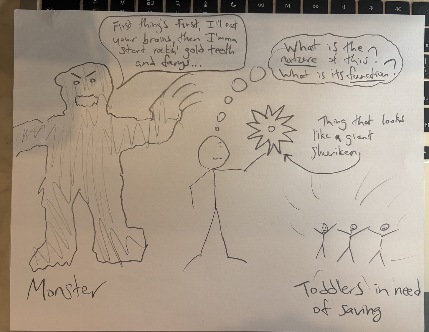 Now, I find that it is very common for people to dismiss these arguments like Covid in late 2019 — “Oh, it’s probably not that bad, and anyway, it’ll never make its way here”. They think that there’s inadequate evidence for the particular empirical premises, and that even if these debunking arguments manage to pick off a few non-consequentialist (or if we must, “deontological”) principles, there are still more, better ones that are safe from the gathering storm. “Oh, doing and allowing? Nobody believes in that, it’s about starting a new threat vs. redirecting an old one! The Doctrine of Double Effect? What is this, the 13th Century? We have the Principle of Productive Purity! And the revised version with an asterisk! And there are more asterisks where that came from so don’t even start! We can crank out asterisks faster than you can crank out fMRI results, that’s for damn sure!”